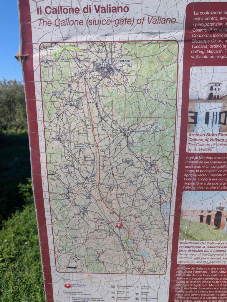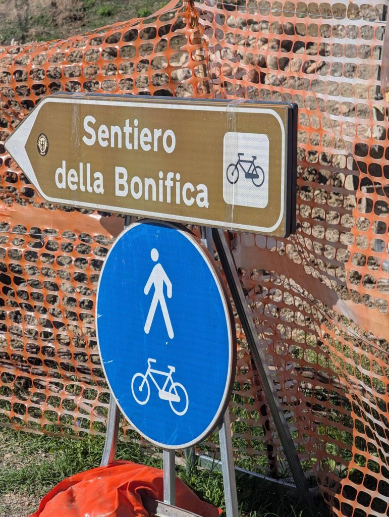 Ab Pontcelli hatte ich Straßenbelag unter dem Reifen. Doch im weiteren Verlauf endete die Straße abrupt und ich war auf Schotter. Zu allem Übel ging es jetzt auch noch steil bergab und ich entschied mich für Safty First da ein Fahren für mich unmöglich war. Somit schob ich mein Fahrrad den Berg hinab. War das nicht schon genug musste ich nochmals das Fahrrad schieben, da eine Unterführung unter der A1 vollgelaufen war.