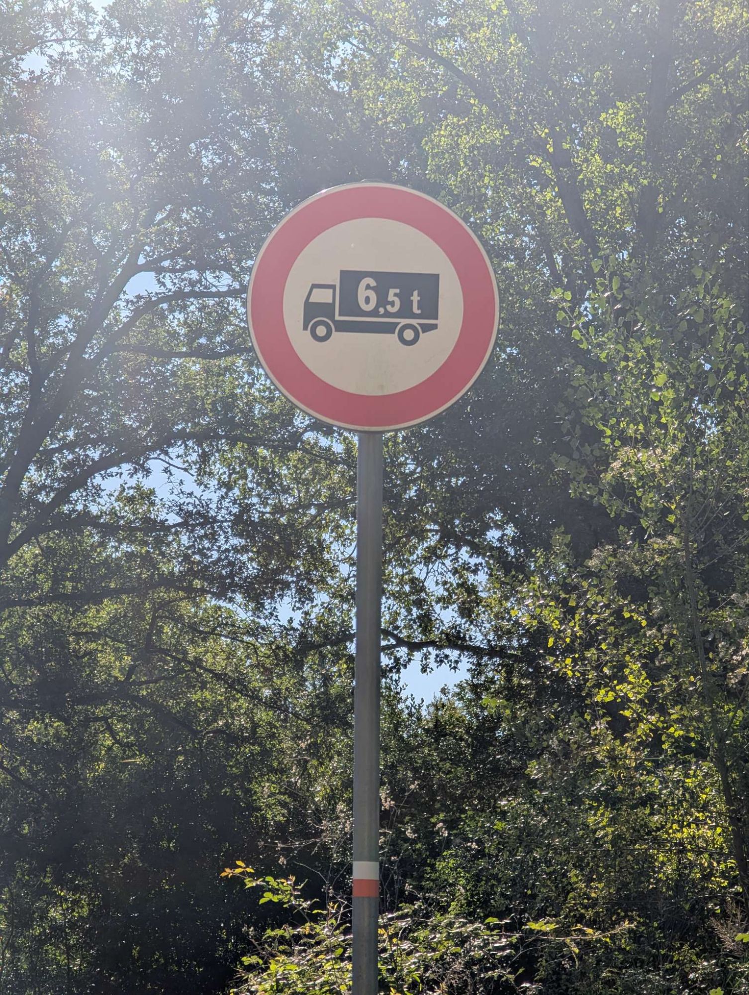 Weiter ging der Ritt bis Attigliano immer auf asphaltierten Straßen. Hier musste ich aber wieder auf Schotter wechseln. Auch war wieder Safty First ein guter Berater und ich schob das Fahrrad den Berg hinab. Etwas lachen musste ich schon, da am Ende meiner Schiebestrecke ein Schild montiert war, welches für Fahrzeuge über 6,5t verboten war. Hier setzte auch wieder Asphalt ein und ich war froh darüber, da ich anschließend eine Steigung mit ca 18% hatte.