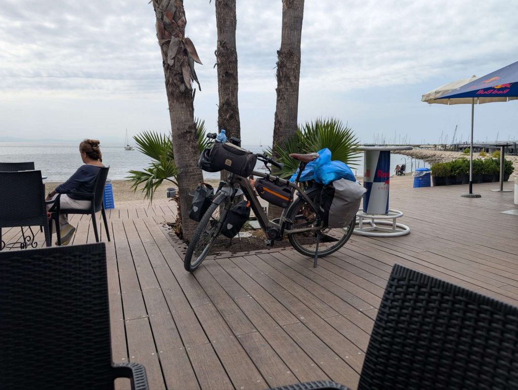 Meine Unterkunft, welche ich tags zuvor mangels Zeltplätze gebucht hatte verließ ich gegen 07:45Uhr. Noch bevor ich einen Meter gefahren bin, stand ich schon komplett im Wasser. Der Grund lag darin, dass das Zimmer im zweiten Stock war und ich mein komplettes Equipment in mehreren Durchläufen zum Bike bringen musste. Das Frühstück, welches includiert war, bestand aus einem verpackten Croissant und Nutella,😂