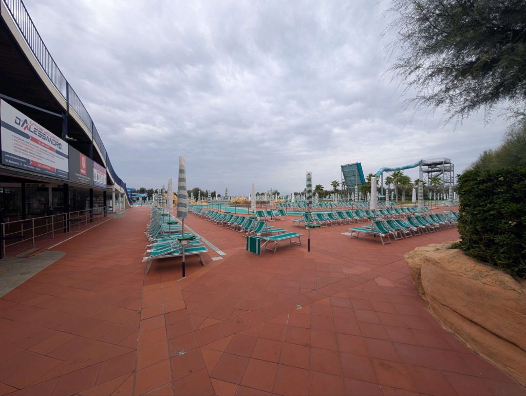 Nach Salerno fuhr ich für gute 40km der Küste entlang. Auch hier erschrak ich, was aus einst blühenden Touristenhochburgen geschah. Viele Bars und Restaurants standen verlassen da und die wenigen, welche noch bewirtschaftet wurden hatten kaum Gäste. Auch die vielen Campingplätze entlang der Straße sind geschlossen oder kaum belegt, was vom Straßenrand gesehen werden konnte. Selbst ein riesiger Aquapark geschlossen und dem Verfall geweiht.