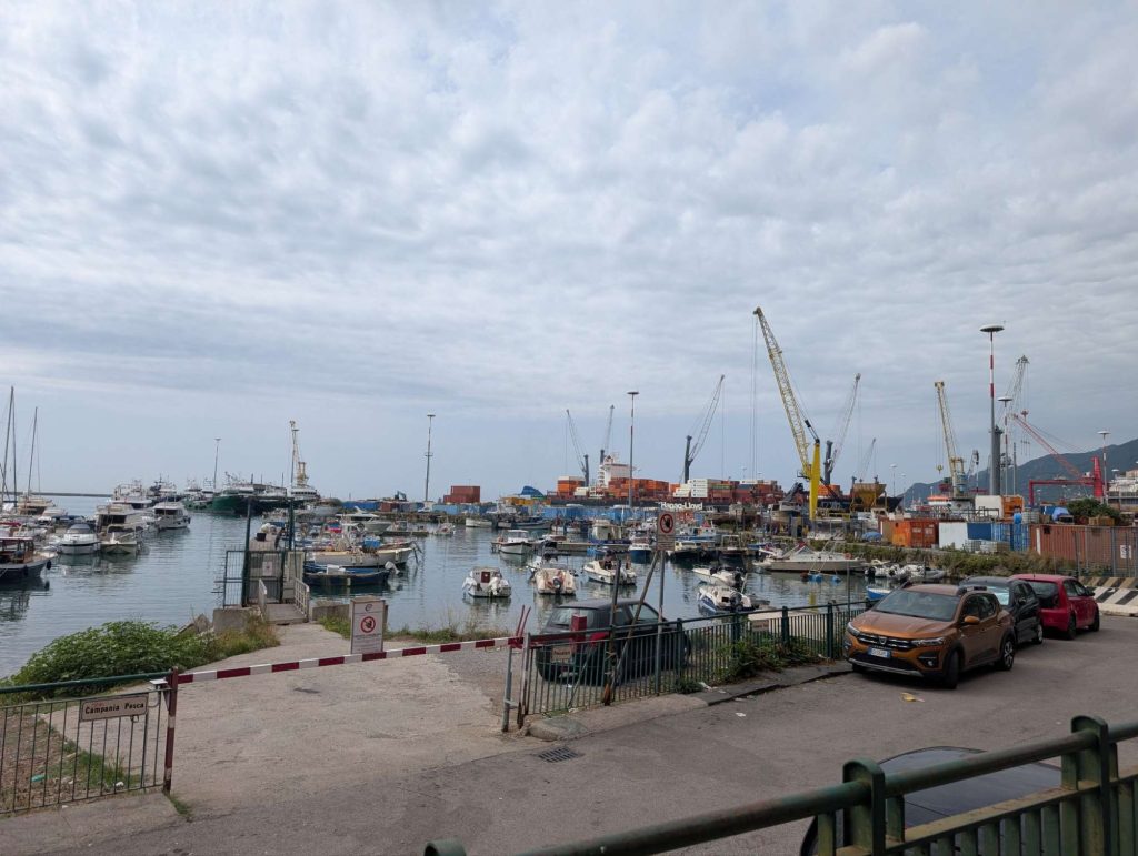 In Salerno angekommen, fiel einem sofort ein gewisser Touristenstrom auf und eine schöne Uferpromenade. Meine Navigation jagte mich quer durch die hintersten Straßen und langsam gewöhne ich mich auch an den Fahrstil der Italiener, nur das ständige Hupen nervt. Man darf nur keine Angst haben, wenn man in Straßen einbiegt oder diese quert. Einfach beherzt einfahren, es wird eine gewisse Rücksicht genommen. Trotzdem immer voll konzentriert den Verkehr beobachten. Trotz der größeren Stadt Salerno ging der Verkehr, für mich, zivilisierter zu.