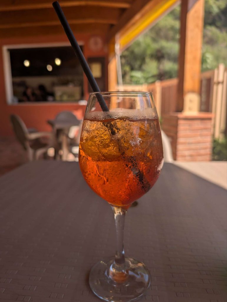Nachdem ich auf dem Campingplatz in Martina di Camerota mein Zelt aufgebaut hatte, ging es endlich einmal zum Baden 🏊 ins Meer. Ein sehr schönes Gefühl nach diesen vielen Kilometern. Anschließend noch einen Aperol Spritz und die Welt war wieder in Ordnung.