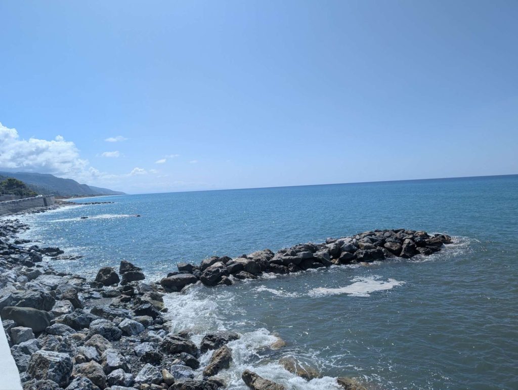 Los ging es heute schon um 07:30 Uhr nachdem ich meine Habseligkeiten gepackt hatte. Die ersten 50km liefen völlig unspektakulär bis auf einmal ein Schild auf der SS18 auftauchte, dass ab jetzt keine Fahrräder mehr zugelassen sind. Also wieder eine Ersatzroute gesucht, welche mich um die SS18 führte. Diese fand ich dann auch und ging dann bei Santa Maria auf die Küstenstraße.