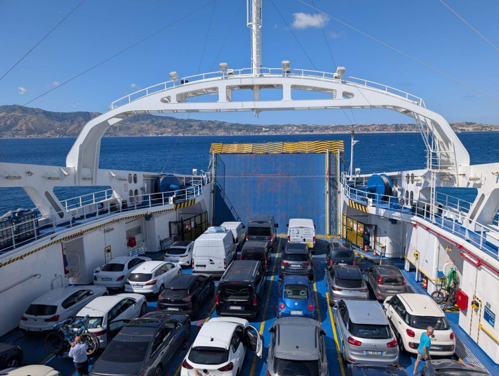 Der Kauf des Tickets für 3€ war unproblematisch und kurze Zeit später konnte ich auf die Fähre nach Messina.