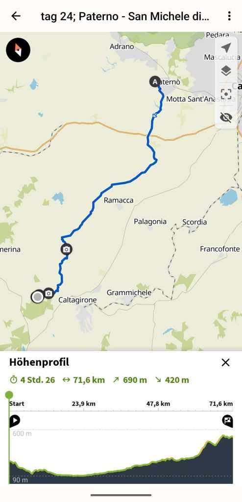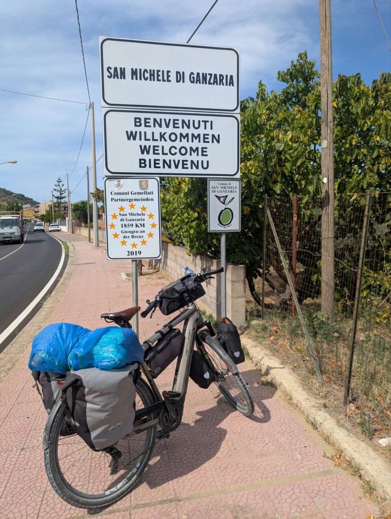 Aber so What – Kilometer für Kilometer kam ich meinem Ziel näher. Die letzten Kilometer gingen nochmals steil bergauf und dann stand ich kurze Zeit später vor dem Ortsschild von San Michele di Ganzaria, der Partnerstadt meines Wohnortes Giengen an der Brenz.